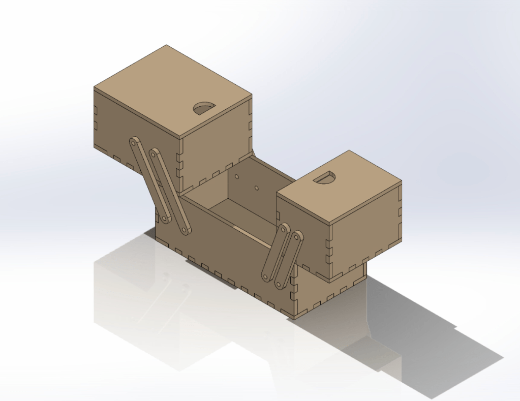 - Cantilever design inspired by tiered sewing boxes